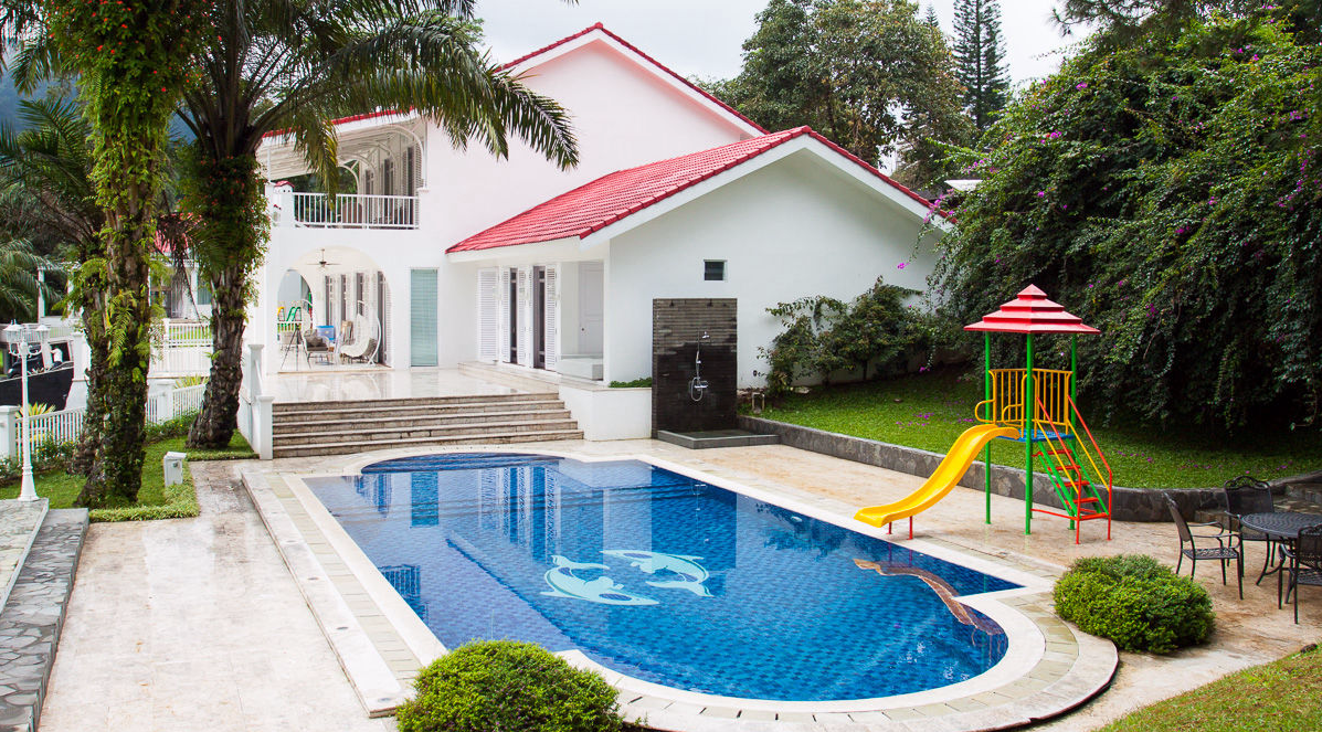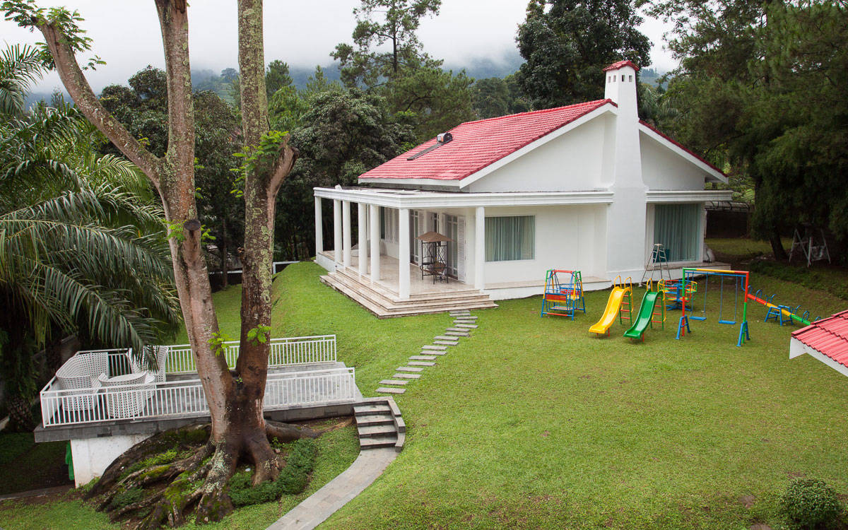 Supported by a spacious garden, swimming pool, children's playground, full kitchen with cooking utensils and cutlery and other facilities, The White House Puncak is suitable for family events or garden parties.