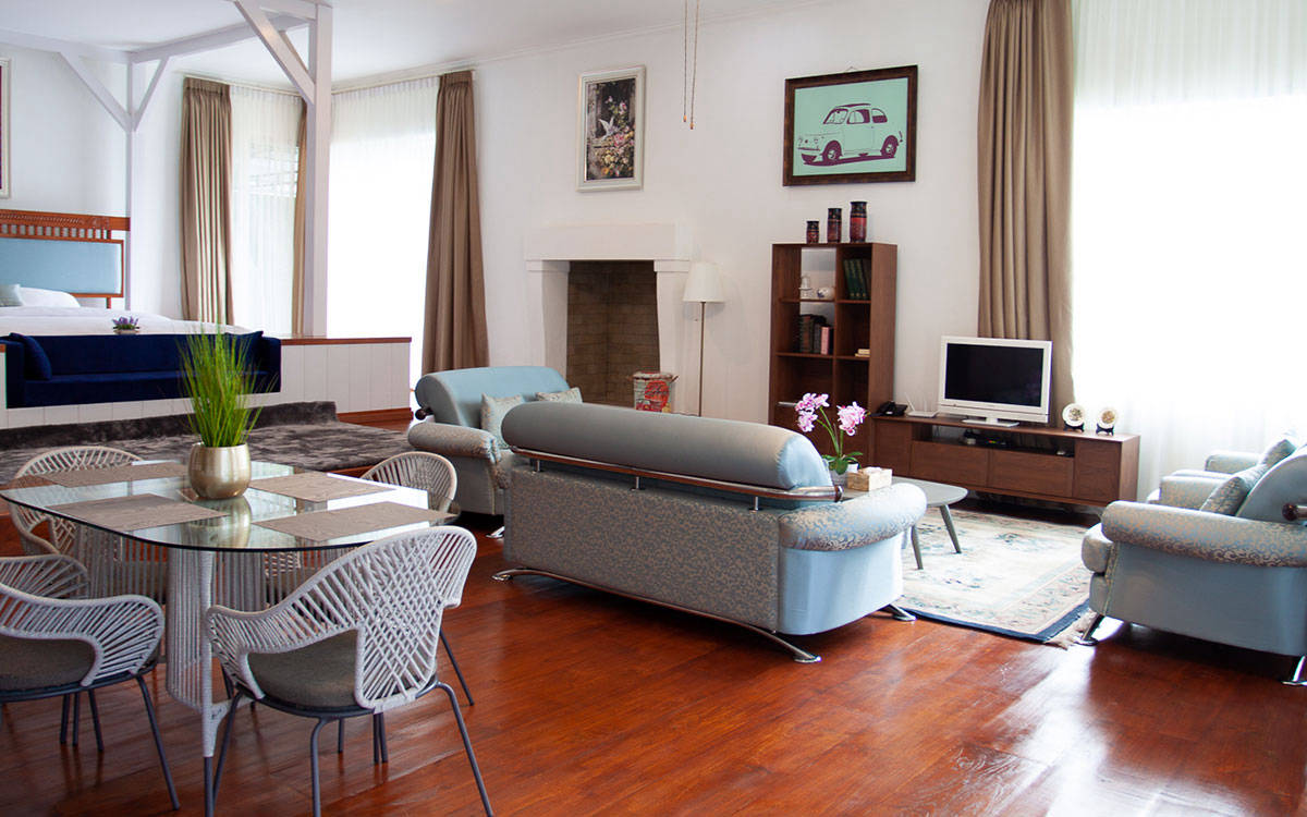 The White House Puncak is the right choice for you and your family, in the Puncak area, West Java. The White House with an area of 6500 m2 is located on Jl. Raya Puncak, Tugu Utara, Cisarua, Bogor. You can spoil your eyes and mind with the coolness and beauty of a stretch of hills and mountains that you can enjoy directly. The White House Puncak consists of 2 Villas, Royal Villa & Pincess Villa, each villa has complete facilities such as International Tv channel, wireless internet connection, water heater and others.